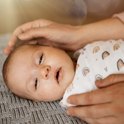Formát 120 × 120 cm uľahčuje bezpečné a pohodlné zavinovanie aj ďalšie použitie – od prikrývky po clonu kočíka alebo ľahkú deku do autosedačky.