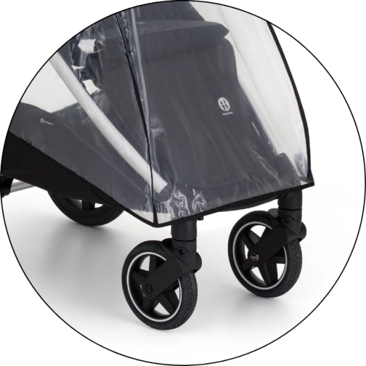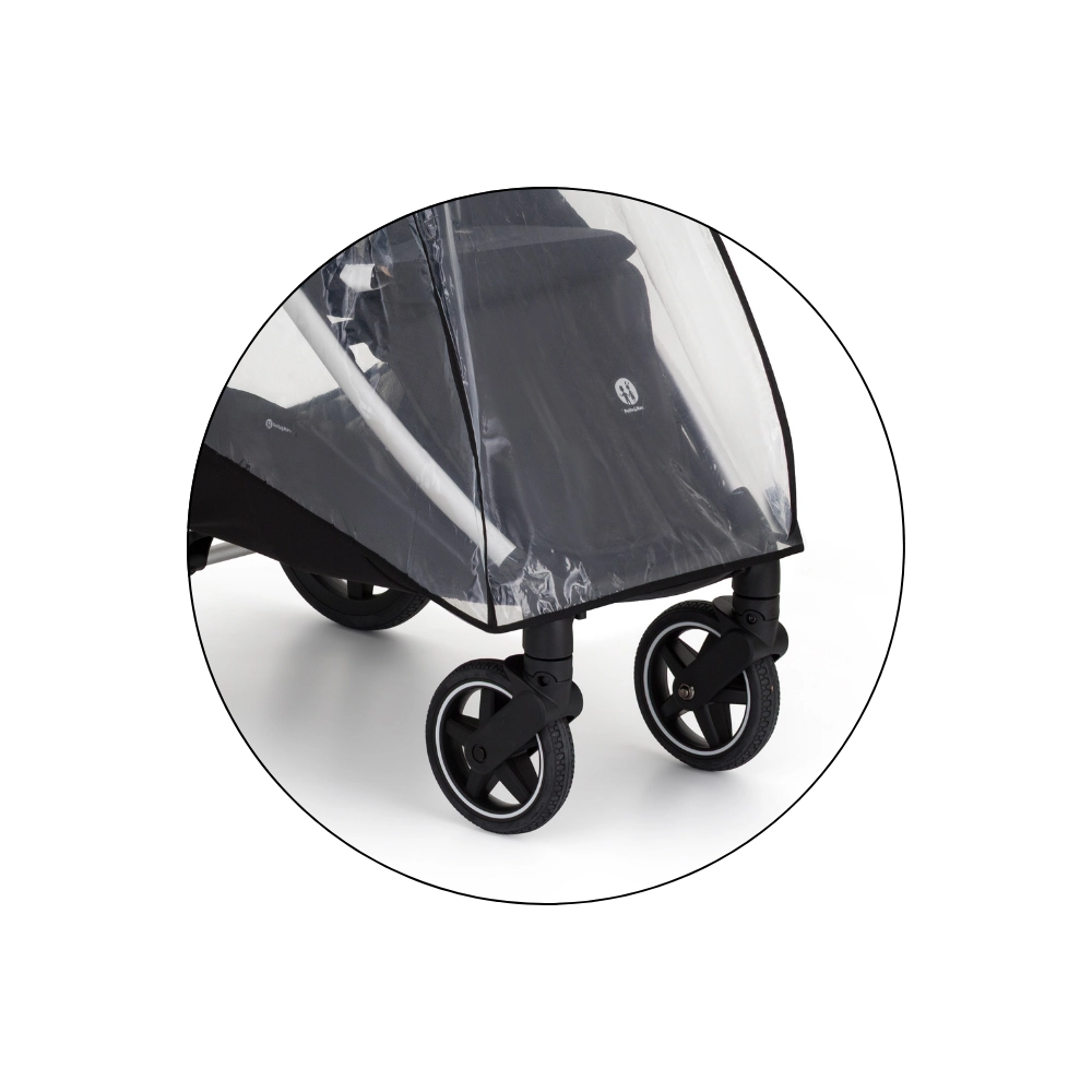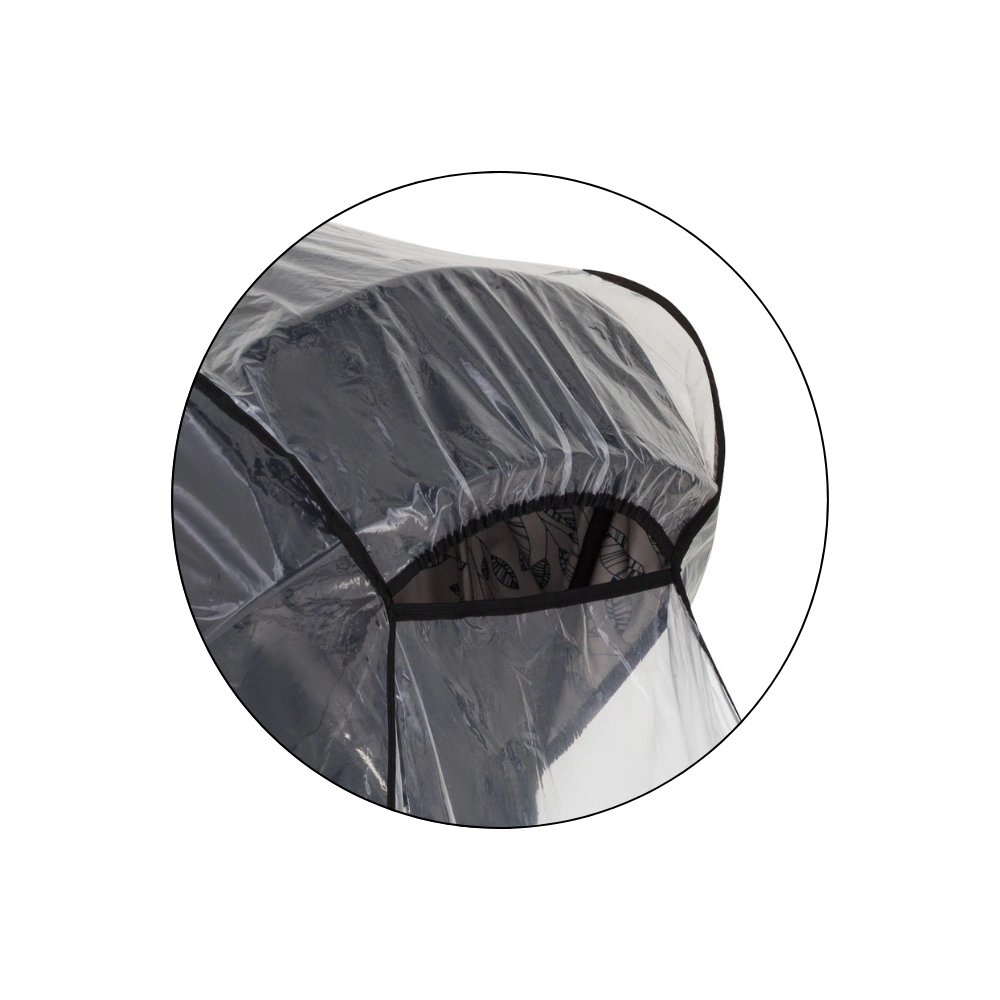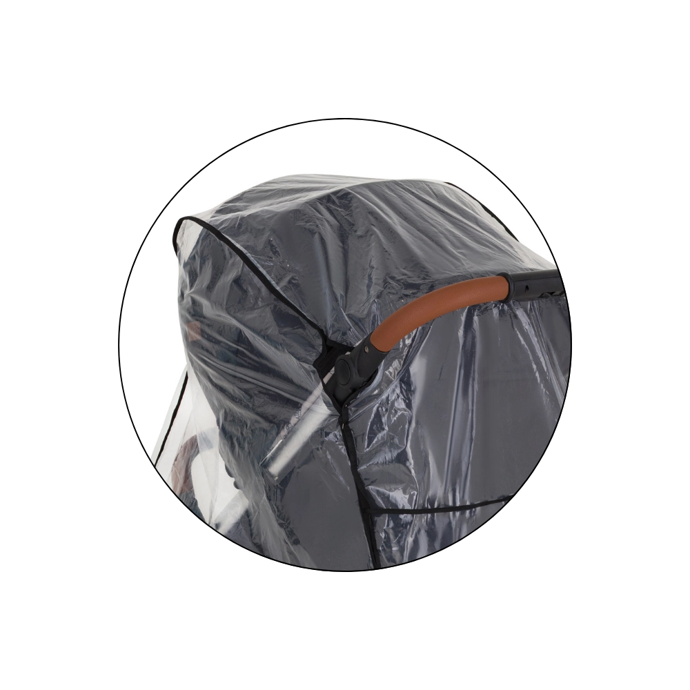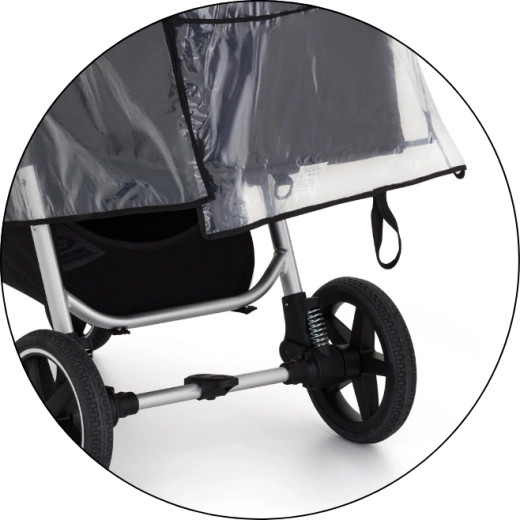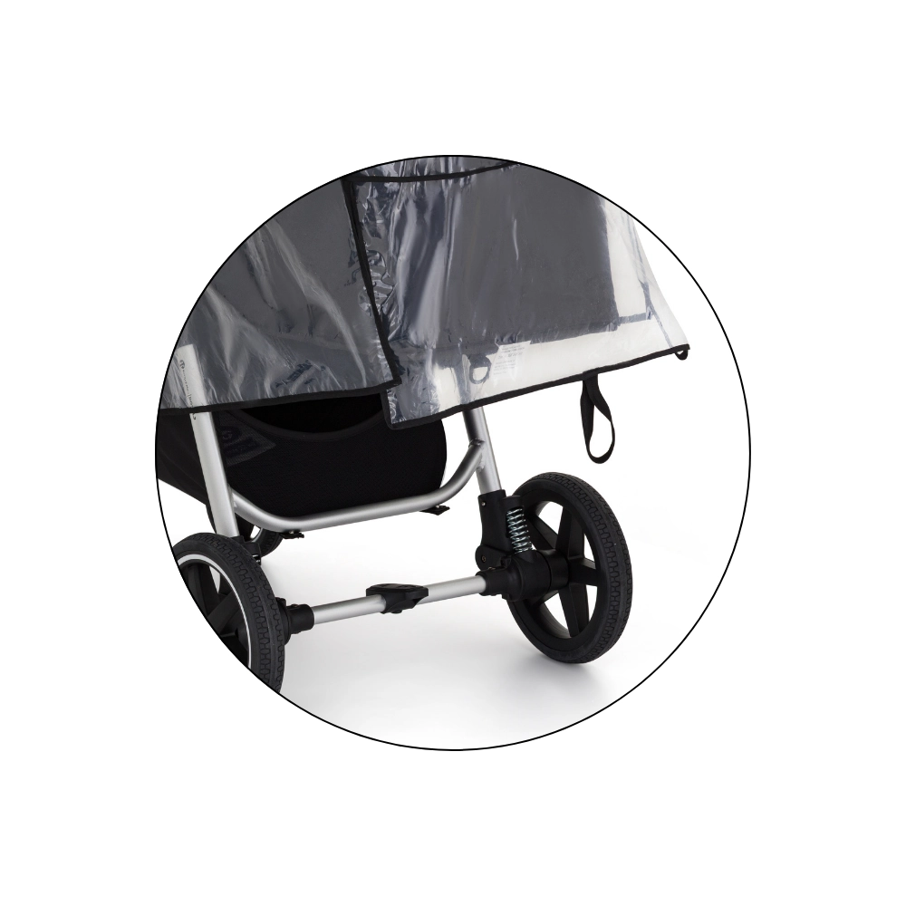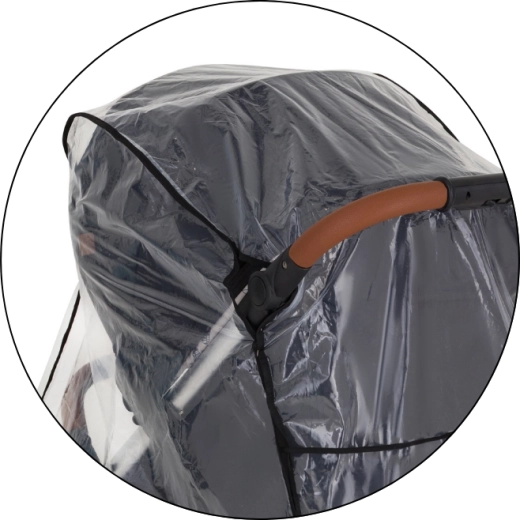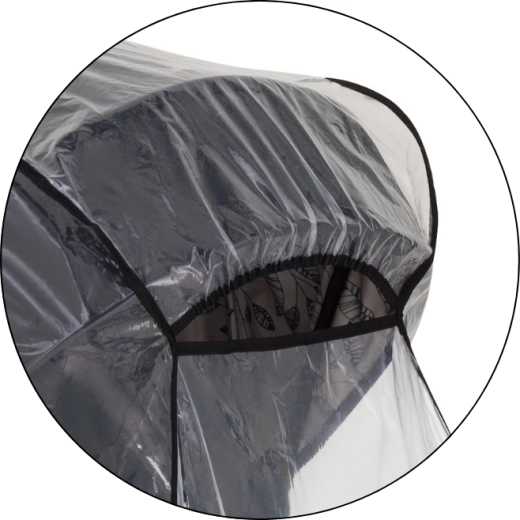 Transparentný kryt s kvalitným lemovaním chráni dieťa aj kočík, zároveň zachováva perfektný výhľad a dohľad rodiča.