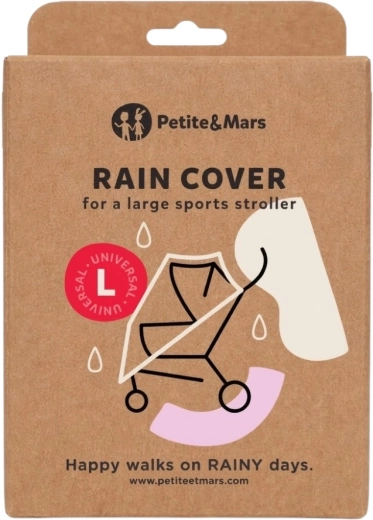 Pláštenka PETITE&MARS Rainy Large je navrhnutá pre priestranné športové kočíky, ako sú modely STREET, STREET+/2, ROYAL alebo VALCO. Je vyrobená z mäkkej a odolnej fólie, ktorá sa dokonale prispôsobí tvaru kočíka a zaistí maximálnu ochranu pred nepriaznivým počasím pri zachovaní skvelej viditeľnosti na dieťa.