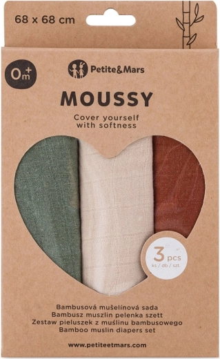 Bambusovo-bavlnené mušelínové plienky Moussy sú nevyhnutnou súčasťou každodennej starostlivosti o bábätko. Vďaka kombinácii 70 % bambusu a 30 % bavlny vynikajú mäkkosťou, ľahkosťou a skvelou savosťou. Sú bezpečné už od narodenia, neobsahujú škodlivé látky a sú šetrné aj k tej najjemnejšej pokožke.