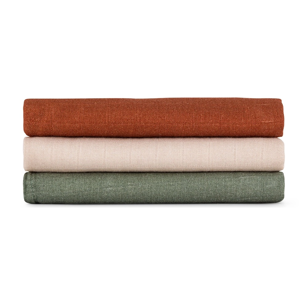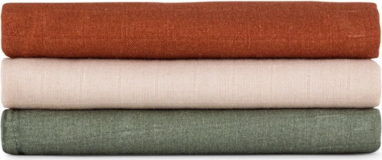 Všestranné využitie oceníte doma aj na cestách: ako plienku, uteráčik, prikrývku, zavinovačku alebo plienku na odgrgnutie. Mušelín je vzdušný, odolný voči zápachu a vďaka termoregulácii v lete príjemne chladí a v zime hreje. Elegantné odtiene Earth Tones ľahko zladíte s výbavičkou.