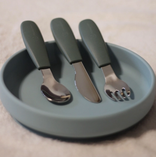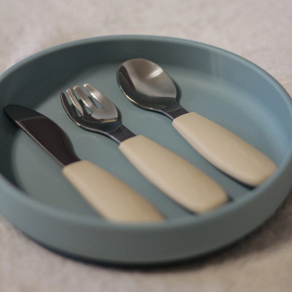 Dizajn v jemnom odtieni Velvet Latte ladí s ostatným detským riadom z kolekcie Take&Match – môžete si tak vytvoriť vlastnú štýlovú výbavu. Príbory sú vhodné do umývačky, neobsahujú BPA ani ftaláty a sú určené pre deti od 12 mesiacov.
