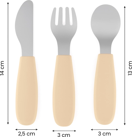 - Kompletná sada 3 ks: lyžička, vidlička a bezpečný nôž