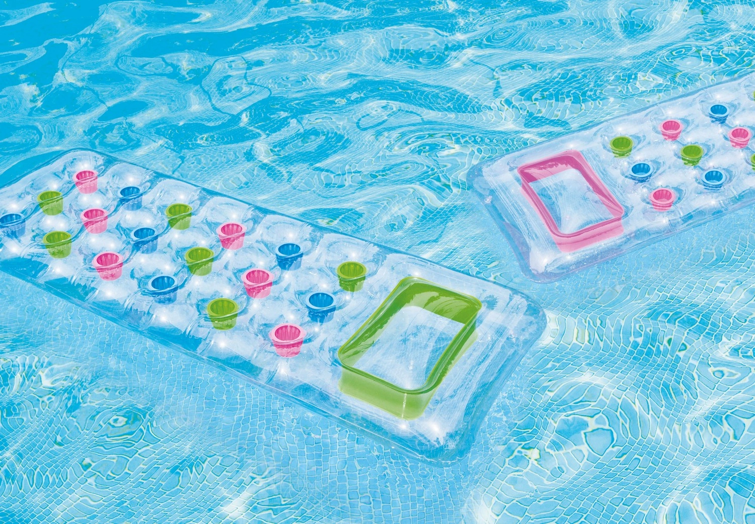 Štýlové ružové nafukovacie ležadlo INTEX je ideálne na relax vo vašom bazéne aj pri mori. Vďaka priehľadnému okienku si môžete vychutnať pohľad pod hladinu, zatiaľ čo integrovaný vankúš poskytne oporu hlave a maximálne pohodlie pri leňošení.