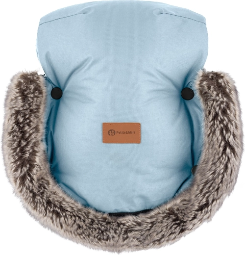 Zimný set PETITE&MARS kombinuje univerzálny fusak Arctic 4v1 a rukavice Furry v ladiacom odtieni Sky Whisper. Fusak je extra dlhý (až 110 cm), mäkko polstrovaný s teplou fleecovou podšívkou, má nepremokavý a vetruodolný povrch s BIONIC-FINISH ECO a praktický predný zips pre ľahký prístup k dieťaťu. Šnúrky vytvarujú hrejivú kapucňu, odnímateľná kožušinka chráni proti vetru a protišmyková zadná strana (ABS) drží fusak na mieste.