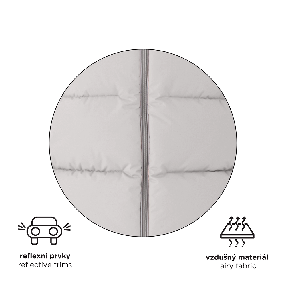 Nepremokavý a vetruodolný povrch s technológiou BIONIC-FINISH ECO, teplá fleecová podšívka a kapucňa so sťahovaním udržia bábätko v teple aj pri zimných prechádzkach.
