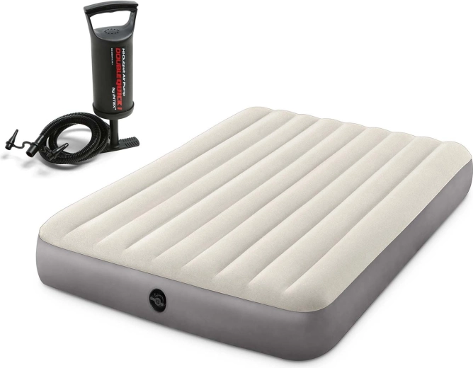 Vrchný flockovaný povrch je mäkký a príjemný na dotyk, zároveň pomáha udržať posteľnú bielizeň na mieste. Praktická piestová pumpa v balení zaistí rýchle nafúknutie aj vyfúknutie, takže matrac ľahko pripravíte na spánok aj upracete.