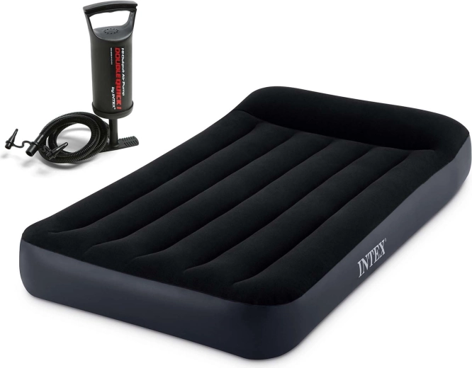 Súčasťou balenia je ručná piestová pumpa s viacerými nadstavcami na jednoduché nafukovanie aj vyfukovanie – posteľ pripravíte na spánok behom chvíľky.