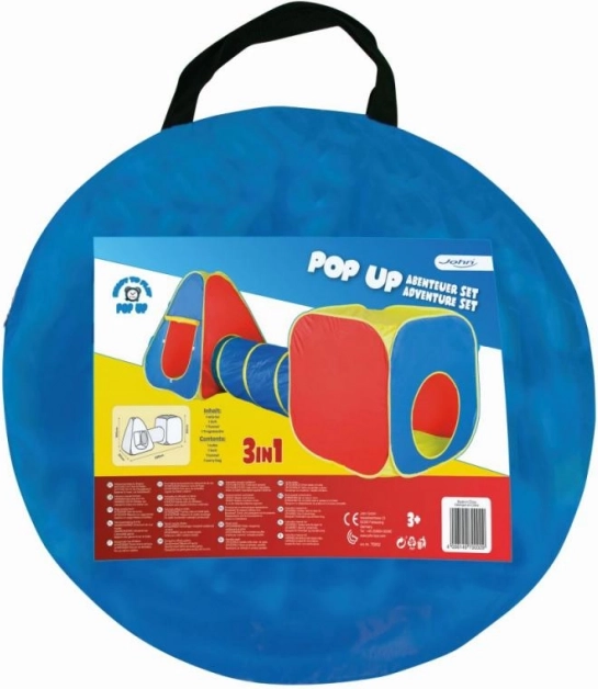 Zábavný pop-up set stanov 3 v 1 premení izbu či záhradu na detské ihrisko. Obsahuje kockový stan, tunel a pop-up stan, ktoré možno používať spolu alebo samostatne. Rýchle rozloženie bez námahy, ľahká konštrukcia a jednoduché skladovanie zaručujú pohodlné hranie doma aj vonku.