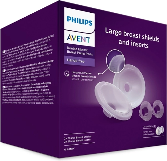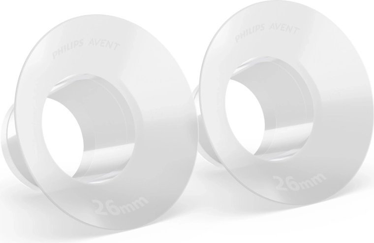 - Lepšie prispôsobenie – kombinácia veľkostí 28 mm (nástavec) a 26 mm (vložka) pre väčšie prsia a bradavky.