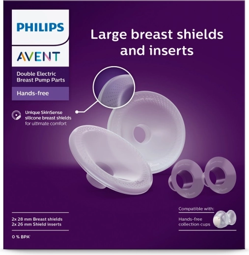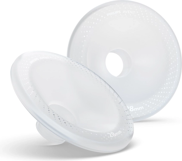 Uľahčite si odsávanie s kompatibilnými vložkami a nástavcami Philips AVENT pre hands-free odsávačky. Sada ponúka dve veľkosti (28 mm nástavec, 26 mm vložka) pre pohodlné a bezpečné nosenie, efektívne odsávanie a jednoduché čistenie. Mäkký silikón sa jemne prispôsobí tvaru prsia a napomáha prirodzenému rytmu odsávania podobnému pitiu bábätka.