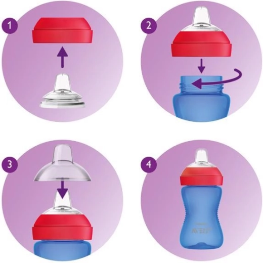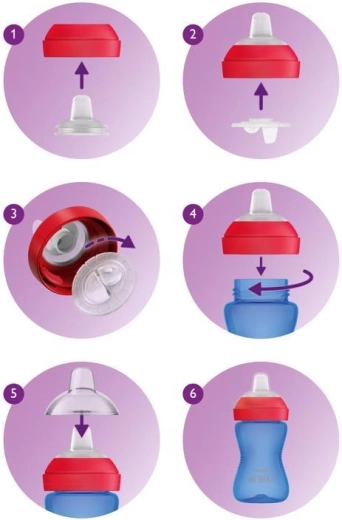 Praktické hygienické viečko udržiava hubičku čistú doma aj na cestách. Všetky časti možno jednoducho rozobrať a umývať v umývačke. Hrnček je vyrobený z bezpečného materiálu bez BPA (0 % BPA) a je kompatibilný s fľašami Philips Avent Classic aj Natural (okrem sklenených).