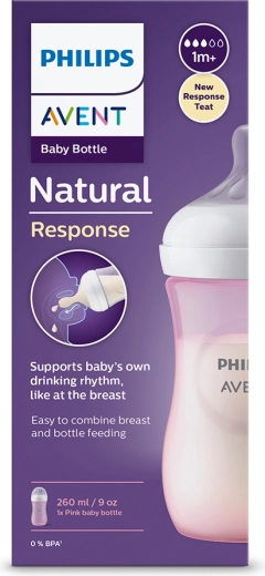 Philips Avent dojčenská fľaša Natural Response 260 ml, ružová (1m+)