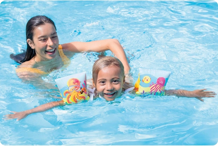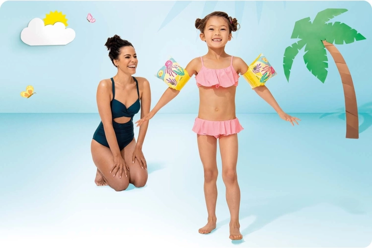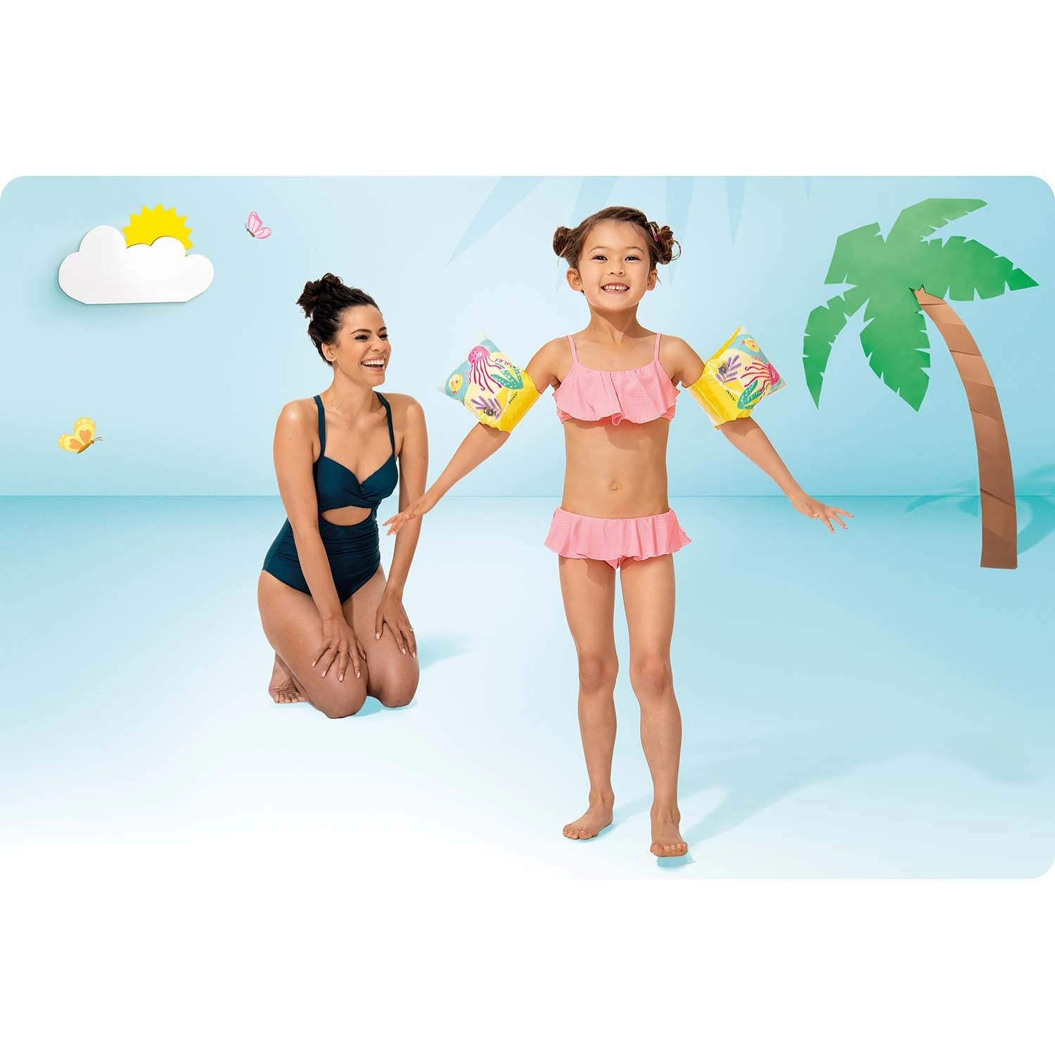 Nafukovacie rukávniky INTEX sú ideálnou pomôckou pre prvé krôčiky vo vode. Dve samostatné vzduchové komory zabezpečujú vyššiu bezpečnosť a stabilitu, zatiaľ čo mäkký, no odolný materiál PVC je príjemný na dotyk a odolá každodennému používaniu pri bazéne aj pri mori.