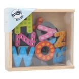 Táto sada obsahuje 37 písmen vyrobených z farebného dreva s kvalitnými magnetmi. Ideálna pre umiestnenie na chladničku alebo magnetickú tabuľu, umožňujúca ľahké skladanie prvých slov. Vhodné pre deti od 3 rokov, táto inovatívna hračka podporuje rozvoj jazykových schopností a motoriky.