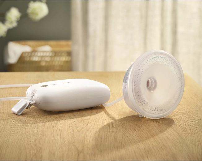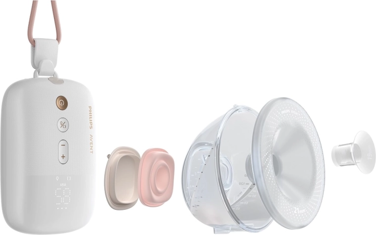 • Komfort na mieru – rôzne veľkosti prsníkových vložiek a mäkký silikónový chránič.