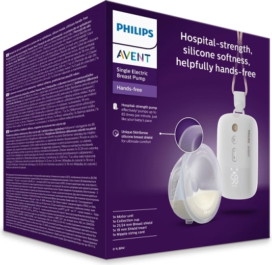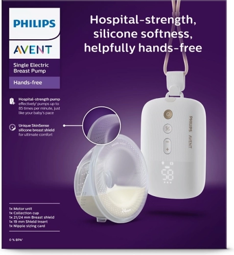 Philips Avent Hands‑Free Premium Plus prináša slobodu pri dojčení aj odsávaní. Vďaka ľahkému, úplne priehľadnému poháriku máte stály prehľad o toku mlieka, zatiaľ čo inteligentný motor pracuje v rytme podobnom saňu bábätka pre jemné a účinné odsávanie. Tichý výkon inšpirovaný nemocničnou technikou zaistí diskrétne používanie doma aj na cestách.