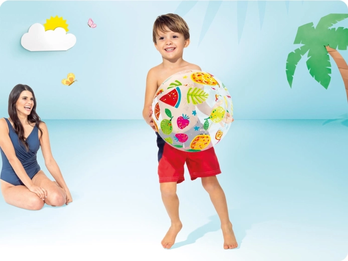 Užite si leto naplno s plážovou loptou Intex s veselou ovocnou potlačou. Skvele viditeľná na piesku aj vo vode, ľahká a skladná – po vypustení zaberie minimum miesta v taške. Odolný vinylový materiál zaistí dlhú životnosť a bezstarostné hranie.