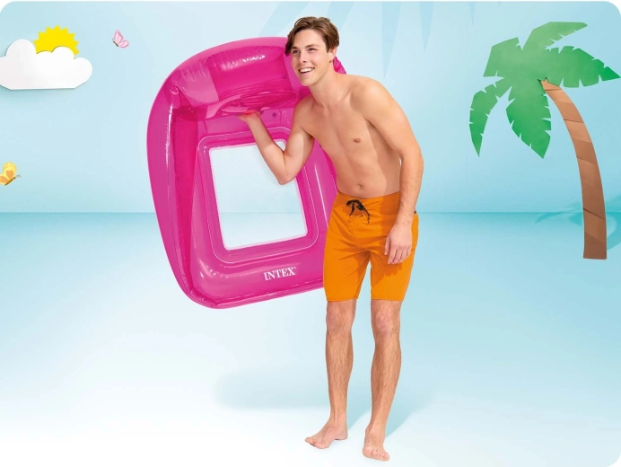 Ružové nafukovacie kreslo Intex je ideálne na pokojnú plavbu na jazerách, v bazénoch aj pri mori. Ergonomické operadlo so sieťovaným sedadlom poskytuje príjemné pohodlie a prúdenie vody pre ochladenie v horúcich dňoch. Dve samostatné vzduchové komory zvyšujú stabilitu aj bezpečnosť pri používaní.