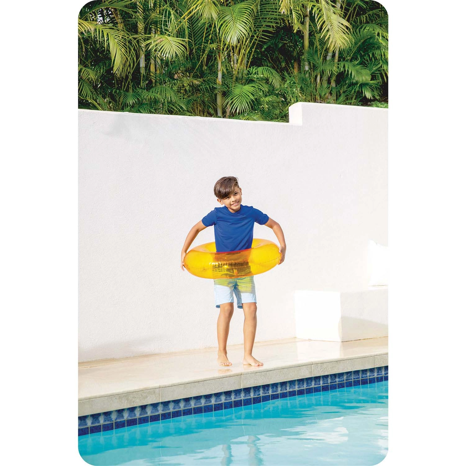 Plavecký kruh je vyrobený z pevného a pružného PVC, ktoré lepšie odoláva drobným oderom. Jasná oranžová farba zvyšuje viditeľnosť vo vode, čo prispieva k bezpečnejšej hre pri bazéne aj na otvorenej vode.