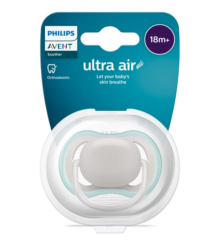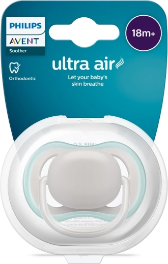 Philips Avent Ultra Air je cumlík navrhnutý pre komfort a zdravý vývoj. Veľké vzduchové otvory zabezpečujú lepšie prúdenie vzduchu a pomáhajú udržať citlivú detskú pokožku suchšiu. Mäkký, textúrovaný a mimoriadne pevný silikónový cumlík rešpektuje prirodzený tvar podnebia, zubov a ďasien, takže je ideálny aj v období prerezávania zúbkov.