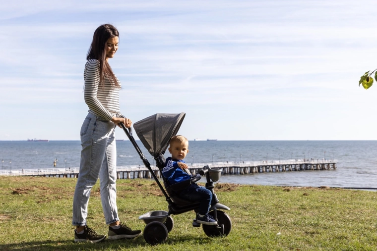 Trojkolka Qplay Cosy 4 v 1 je navrhnutá pre bezpečné a pohodlné vychádzky od batoliat až po predškolákov. Vďaka šikovným riešeniam – výškovo nastaviteľnej rodičovskej rukoväti, 5-bodovému pásu, sklápateľnej stredovej opierke nôh a kolesám z EVA – zvládne hladkú jazdu po chodníkoch aj parkových cestičkách, pričom dieťa zostáva v bezpečí a pohodlí pod strieškou s ochranou UPF30.