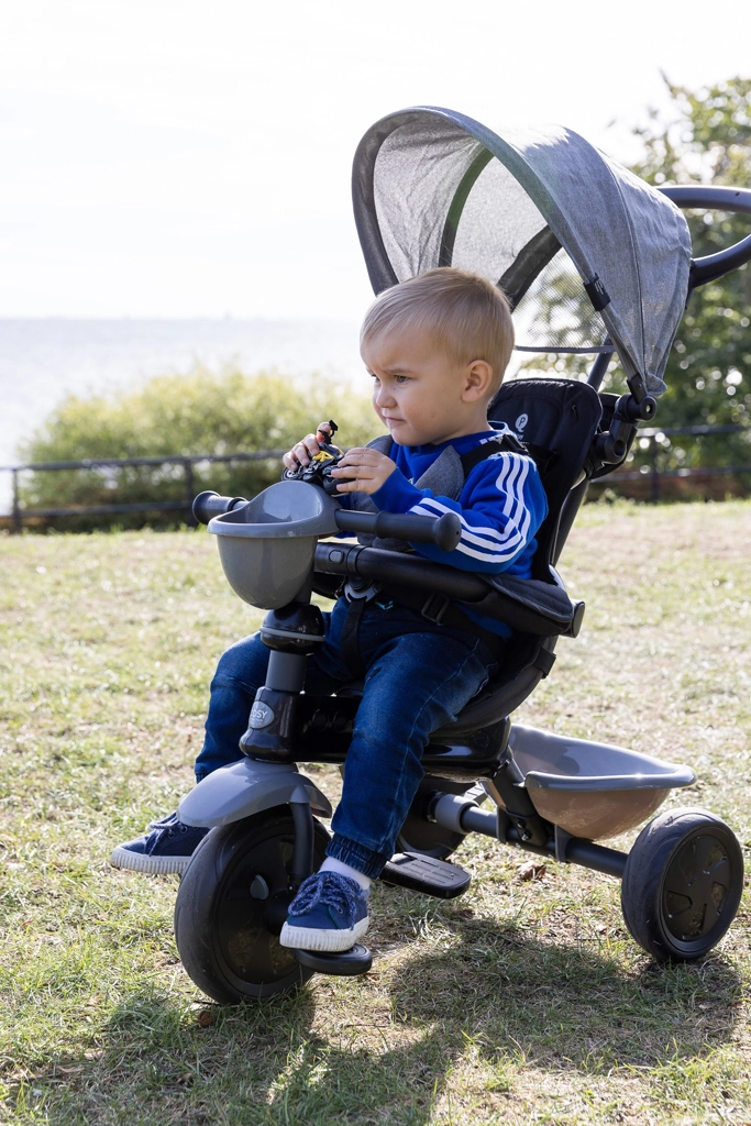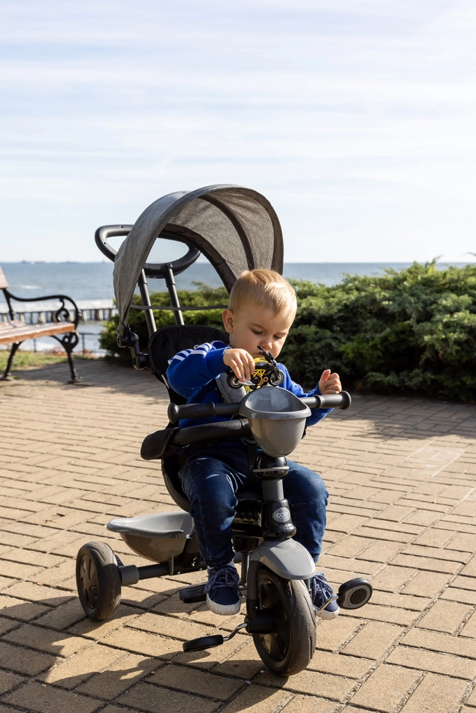 Univerzálna detská trojkolka Qplay Cosy 4 v 1 rastie s vaším dieťaťom od 10 do 72 mesiacov. Ponúka rodičovské ovládanie, pohodlné 5-bodové pásy, nastaviteľnú rukoväť, EVA kolesá pohlcujúce nárazy a slnečnú striešku s UPF30. Vďaka odnímateľným a polohovateľným prvkom sa ľahko premení z kočíkového režimu na samostatnú šliapaciu trojkolku.