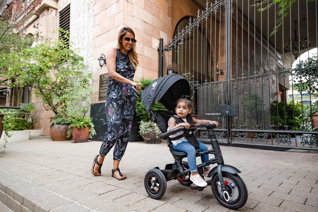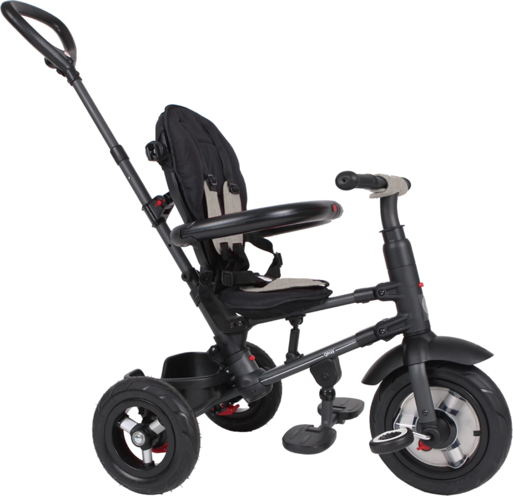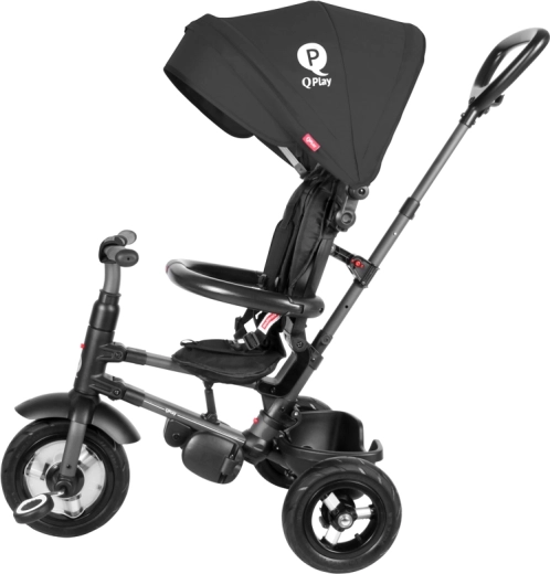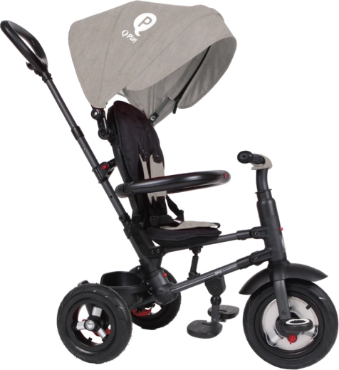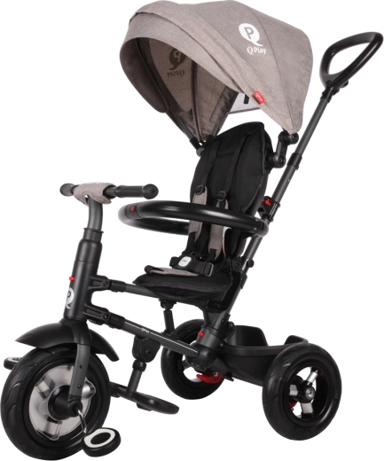 Doprajte svojmu dieťaťu pohodlnú a bezpečnú jazdu s trojkolkou QPlay Rito Air Gel Grey. Ponúka skladací rám, odnímateľnú striešku s UPF 50+, gumené vzduchové kolesá pre hladkú jazdu a 5-bodové bezpečnostné pásy. Vďaka nastaviteľnej opierke chrbta, prednému voľnobežnému kolesu a rodičovskému ovládaniu je ideálna na každodenné prechádzky od 10 do 72 mesiacov.
