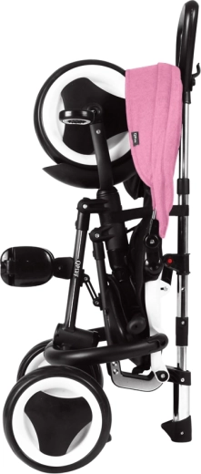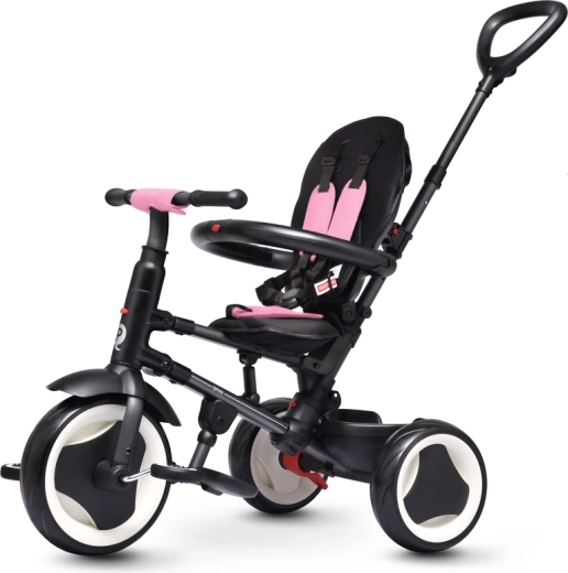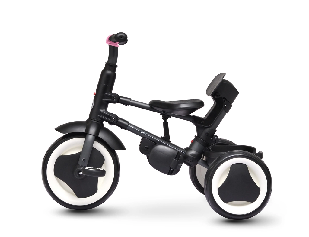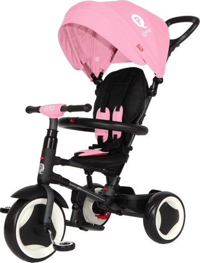 Trojkolka QPLAY Rito Pink je navrhnutá pre maximálne pohodlie dieťaťa aj rodiča. Ponúka výškovo nastaviteľnú vodiacu rukoväť, dve polohy sklonu operadla a priedušné mäkké sedadlo. Vďaka skladaciemu systému ju rýchlo pripravíte na cestu a rovnako ľahko uložíte – po zložení ju možno pohodlne posúvať ako cestovnú tašku.