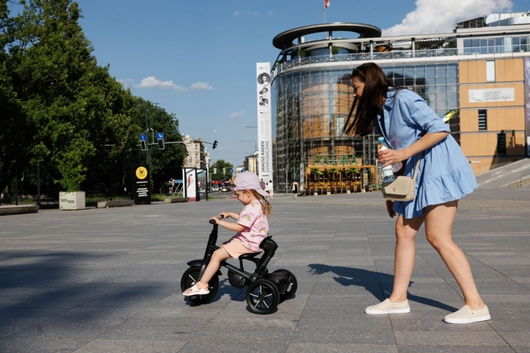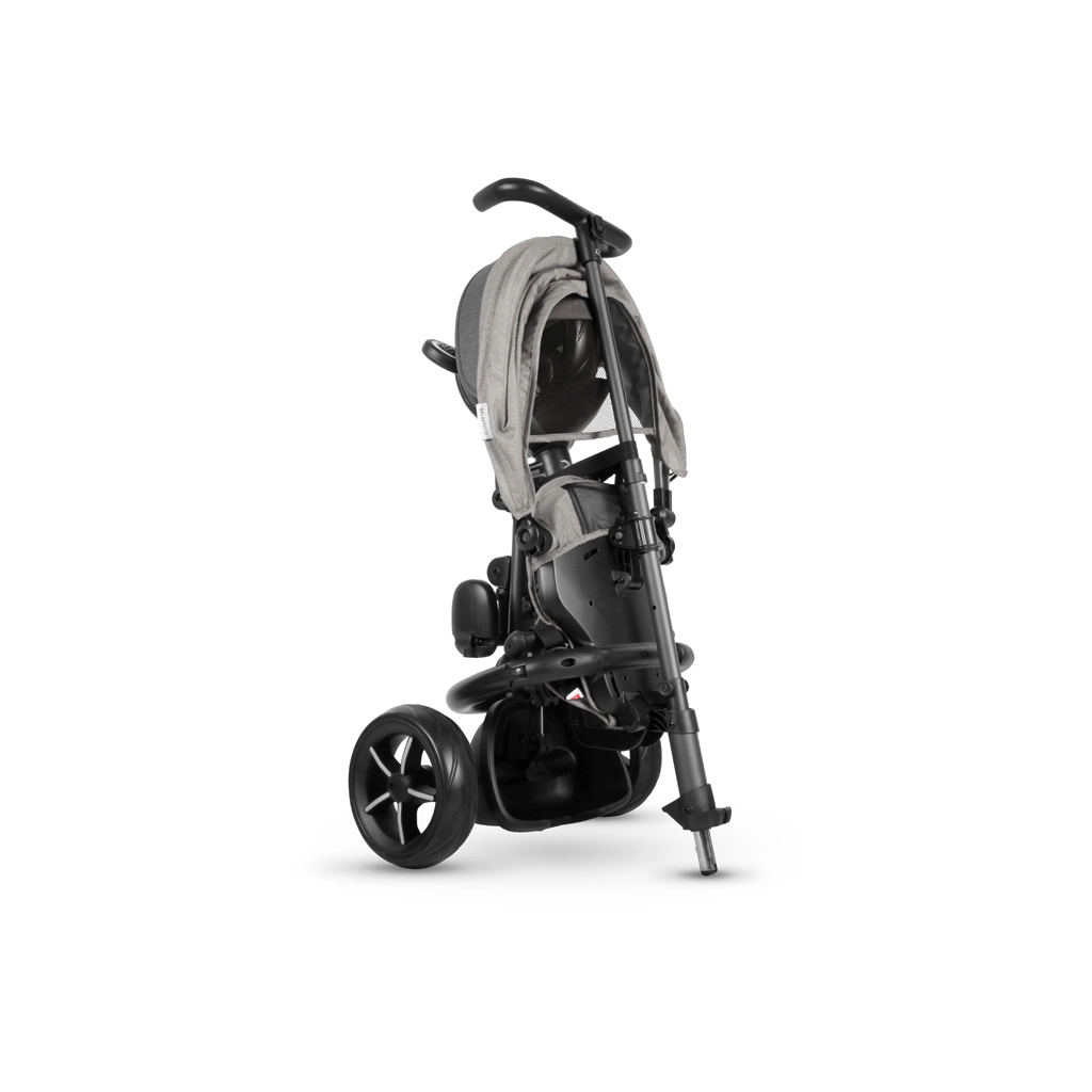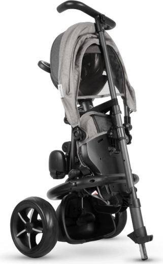 Zložené behom pár kliknutí bez náradia. Po zložení možno trojkolku jednoducho posúvať ako cestovnú tašku – ideálna do auta aj MHD.
