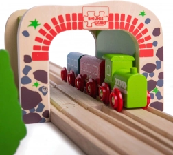 Tunel je vyrobený z kvalitných a zodpovedne získaných prírodných materiálov a je kompatibilný s väčšinou drevených vláčikodráh na trhu. Spĺňa súčasné európske bezpečnostné normy, takže sa deti môžu hrať bezpečne a rodičia v pokoji.