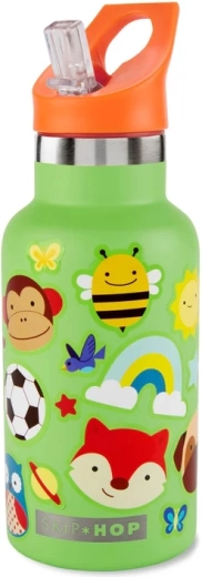 Táto nerezová fľaša SKIP HOP je navrhnutá na každodenné dobrodružstvá detí. Odolné prevedenie udržiava nápoje príjemne chladné, zatiaľ čo sklopná slamka umožňuje pohodlné a hygienické pitie aj na cestách. Vďaka praktickému ušku ju deti ľahko uchopia alebo pripnú na batoh.