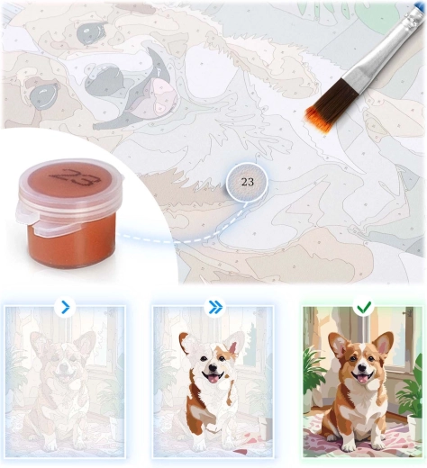Predtlačené a očíslované sektory s farebnou podmaľbou vedú ruku krok za krokom. Ideálne pre začiatočníkov aj deti – výsledok je vždy pôsobivý.