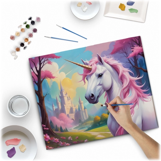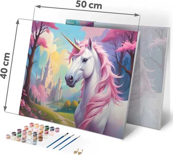 Objavte čaro tvorenia so setom maľovanie podľa čísiel vo veľkosti 40 × 50 cm. Motív jednorožca na kvalitnom plátne na ráme je pripravený na maľbu. V sade nájdete 30 krycích akrylových farieb, 3 štetce zdarma rôznych veľkostí a háčiky na zavesenie. Farebná podmaľba s jemným vzorom uľahčuje maľovanie aj začiatočníkom a zaručí krásny, sýty výsledok.