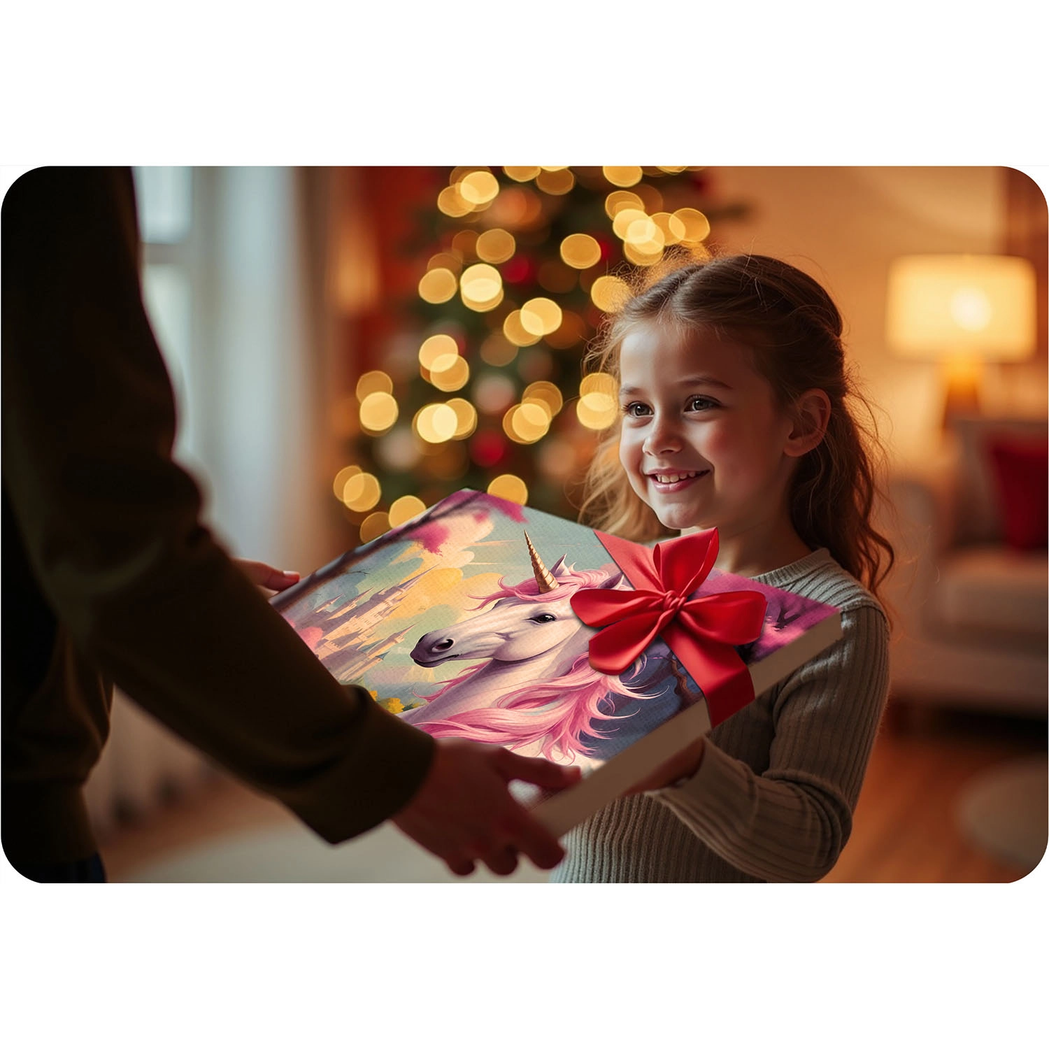 Motív jednorožca poteší malých aj veľkých. Hotový obraz je čarovnou dekoráciou a samotný set je ideálnym darčekom na Vianoce či narodeniny.