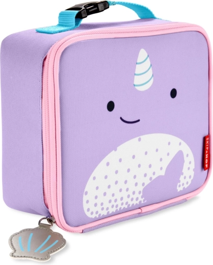 Roztomilá a praktická desiatová taška Skip Hop Zoo s motívom narvala udrží jedlo a nápoje dlhšie čerstvé vďaka priestrannému izolovanému interiéru. Ponúka bezpečné zapínanie na zips, pripínaciu rukoväť na ľahké upevnenie na ruksak a vnútorné sieťované vrecko na príbory alebo chladiaci sáčok. Ideálna do školy, na krúžky, tábory aj pikniky.