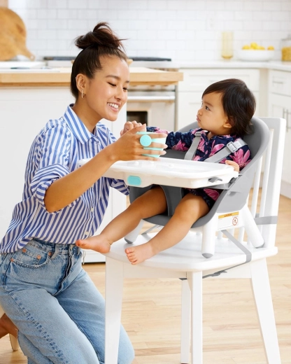 Skip Hop EON 4v1 je štýlová vysoká stolička, ktorá sa prispôsobí veku aj potrebám vášho dieťaťa. Vďaka bukovým nohám, elegantnému sivému sedáku a stabilnej konštrukcii ponúka bezpečné a pohodlné sedenie pri stole aj s táckou. Oceníte jednoduché čistenie – tácku možno umývať v umývačke a povrchy stačí utrieť vlhkou handričkou.