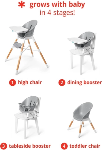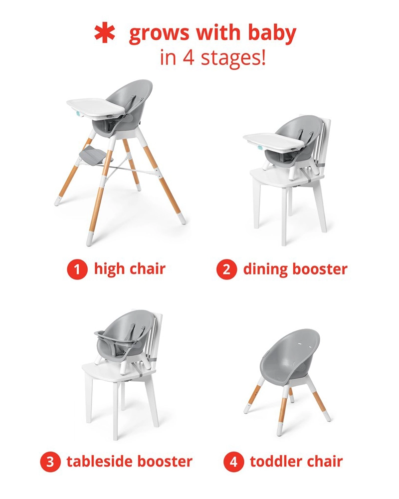 • 4v1 využitie: vysoká stolička s táckou, vysoká stolička bez tácky, vysoká stolička k stolu, detská stolička/kresielko