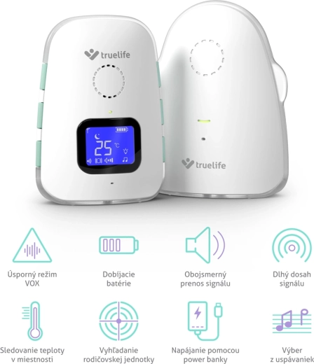 TrueLife NannyTone VM3 je spoľahlivá digitálna audio pestúnka pre nerušený prehľad o dianí v detskej izbičke. Stabilný a bezpečný prenos zvuku s dosahom až 800 m v otvorenom priestore a až 300 m v budove dopĺňa citlivý VOX režim, ktorý pestúnku aktivuje len pri zachytení zvuku a tým šetrí batériu. Vďaka obojstrannej komunikácii môžete bábätko upokojiť na diaľku a zvoliť z 8 ukolísaniek s nastaviteľnou hlasitosťou.