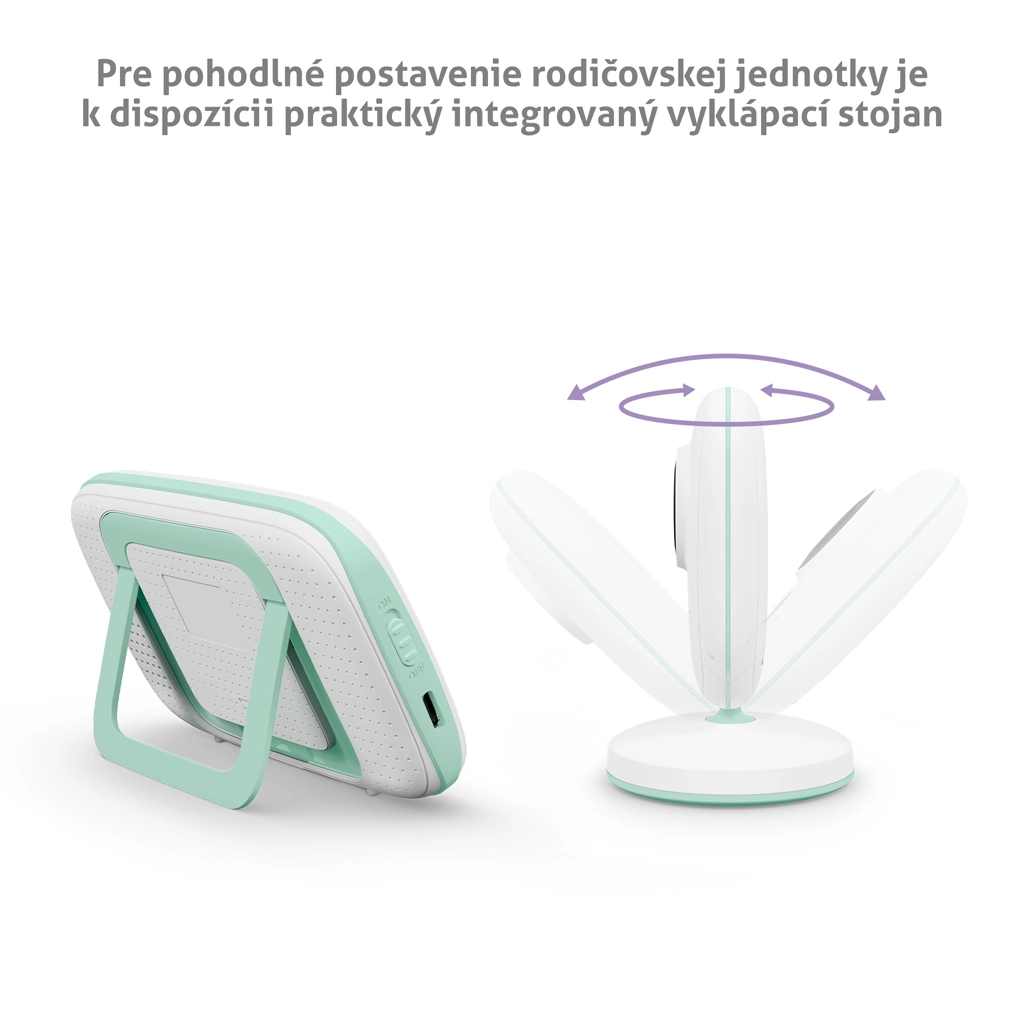 - Detekcia teploty, automatické nočné videnie, uspávanky, režim VOX, obojsmerná komunikácia, pripomienky kŕmenia, ukazovateľ straty dosahu a stavu batérie, spárovanie až 2 kamier