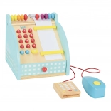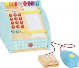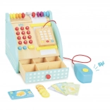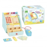 Štýlová drevená pokladňa VILAC poteší malých predavačov aj predavačky. Ponúka funkčnú numerickú klávesnicu, zásuvku na peniaze, počítadlo a bankový terminál. Súčasťou sú aj bankovky a mince i klasické zvukové tlačidlo, ktoré dodá hre na autentickosti.