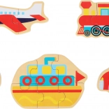 Drevené puzzle – Vozidlá Nemecká firma Legler zameraná na výrobu kvalitných drevených hračiek od roku 1996. Všetky drevené hračky značky small foot majú označenie CE a sú vyrábané podľa európskej normy pre bezpečnosť hračiek EN 71. Použité farby sú špeciálne vyvinuté pre drevené hračky a sú odolné aj proti slinám detí. Drevo, ktoré sa používa na tieto hračky, väčšinou pochádza z lesníckych spoločností zapojených do zalesňovania. To ponúka všetkým zákazníkom možnosť prispieť k zachovaniu prirodzene rastúcich lesov. Drevené hračky small foot sú žiarivo farebné produkty, ktoré sú vyrobené prevažne z prírodných surovín – dreva. Deťom robia radosť od útleho veku, rozvíjajú ich hmatové a zmyslové zručnosti. Cieľom značky small foot je podporovať duševný a fyzický vývoj detí.