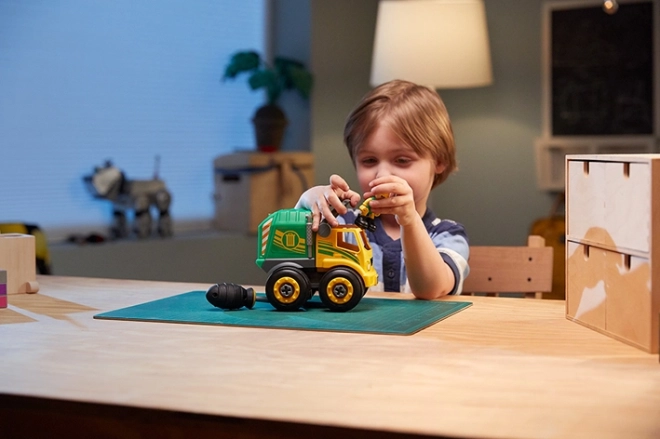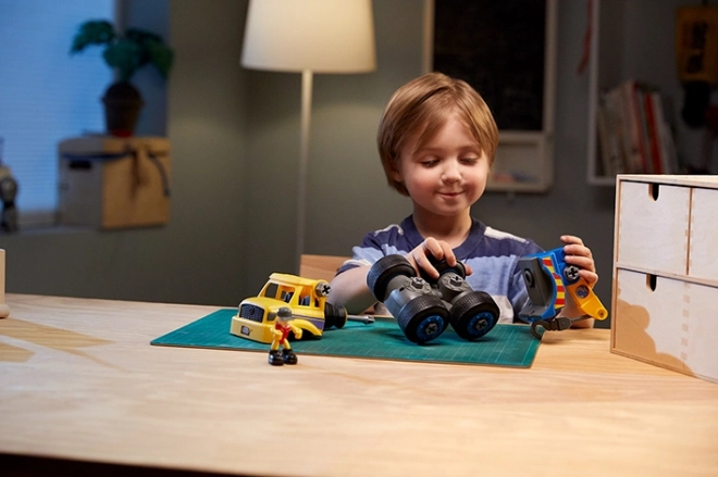 Žltá odťahovka s funkčnými dielmi je ideálna na prvé skrutkovanie. Deti si precvičia koordináciu a hneď potom vyrazia zachraňovať nepojazdné autá.