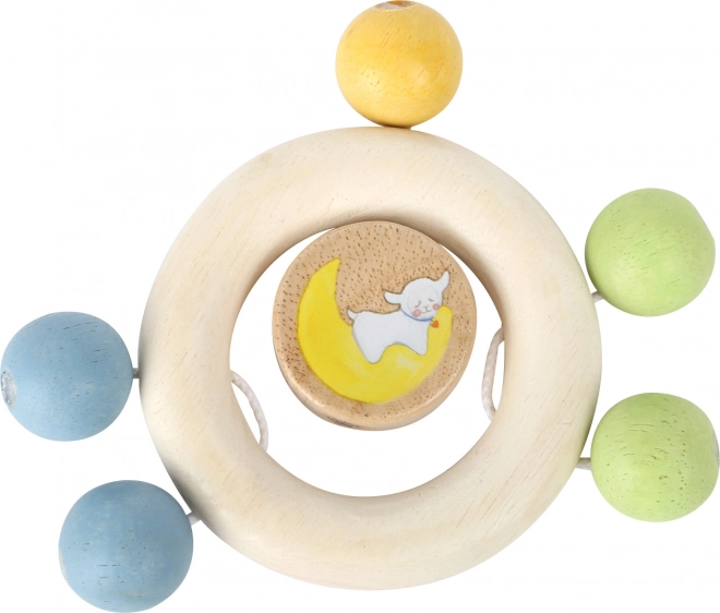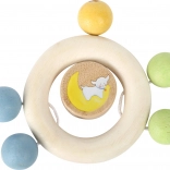Drevené hrkálko Lotta je ideálna hračka pre najmenších, ktorá stimuluje motorické schopnosti a sluch vďaka korálkam hrkajúci o krúžok.