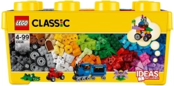 LEGO Classic Kreatívny stredný box ponúka nekonečné možnosti kreatívneho stavania s kockami v 35 rôznych farbách. Obsahuje tiež okná, oči a množstvo kolies, čo obohacuje herný zážitok.