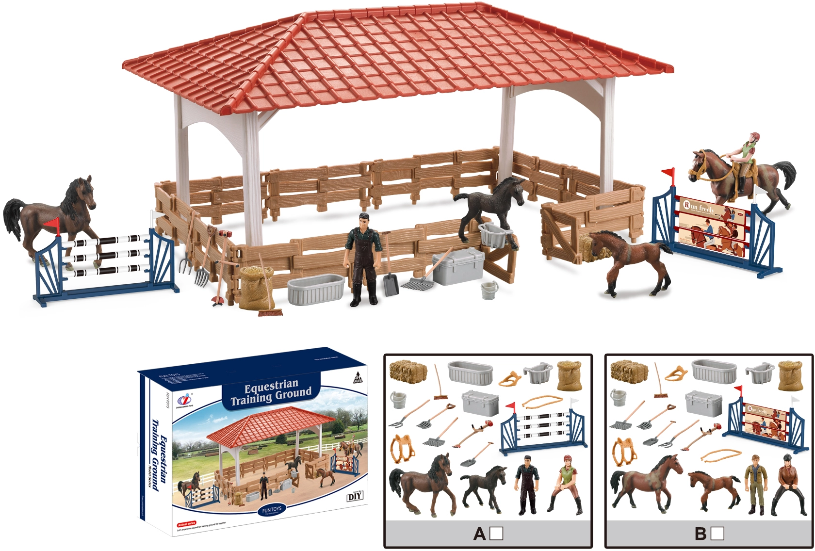 - Realistické doplnky: figúrky koní, prekážky a dekorácie pre skutočný jazdecký zážitok.