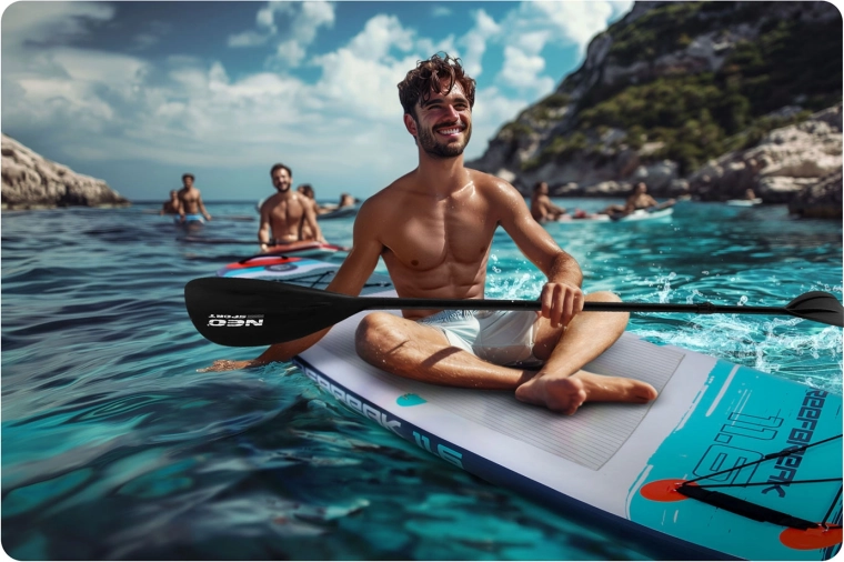 V balení nájdete všetko, čo potrebujete na okamžitú jazdu: ručnú pumpu, nastaviteľné hliníkové pádlo, bezpečnostný leash, odnímateľnú stredovú plutvu, opravnú sadu, batoh a bonusové sedadlo s operadlom a vreckom pre pohodlné pádlovanie v sede. Ideálna voľba pre rekreáciu, fitness aj výlety.