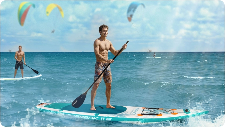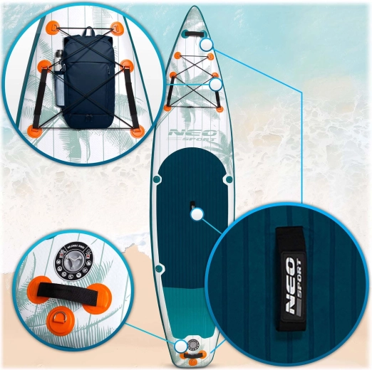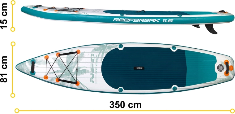 Neo-Sport Reefbreak je nafukovacia SUP doska navrhnutá na rekreačné pádlovanie, celodenné výlety aj prvé pokusy na vode. Vďaka rozmerom 350 × 81 × 15 cm poskytuje skvelú stabilitu a istotu začiatočníkom a zároveň dostatok rýchlosti a smerovej držnosti pre pokročilejších jazdcov. Ľahká a pritom tuhá konštrukcia Drop Stitch Light zaručuje vysokú odolnosť a jednoduchú manipuláciu pri prenášaní aj skladovaní.