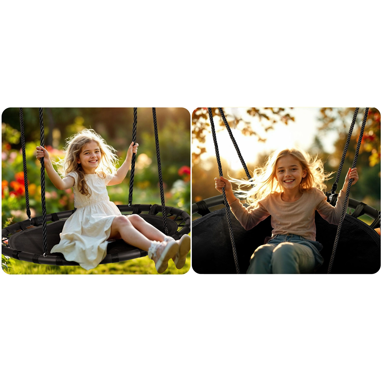Toto robustné hniezdo je skvelou voľbou pre deti aj dospelých. Oceľový rám s mäkkým PE polstrovaním zaisťuje stabilitu, bezpečnosť a dlhú životnosť, zatiaľ čo sedák z odolného materiálu Oxford 600D je vodoodolný a ľahko sa čistí. Vďaka priemeru 120 cm sa na hojdačku pohodlne zmestia aj dve deti.