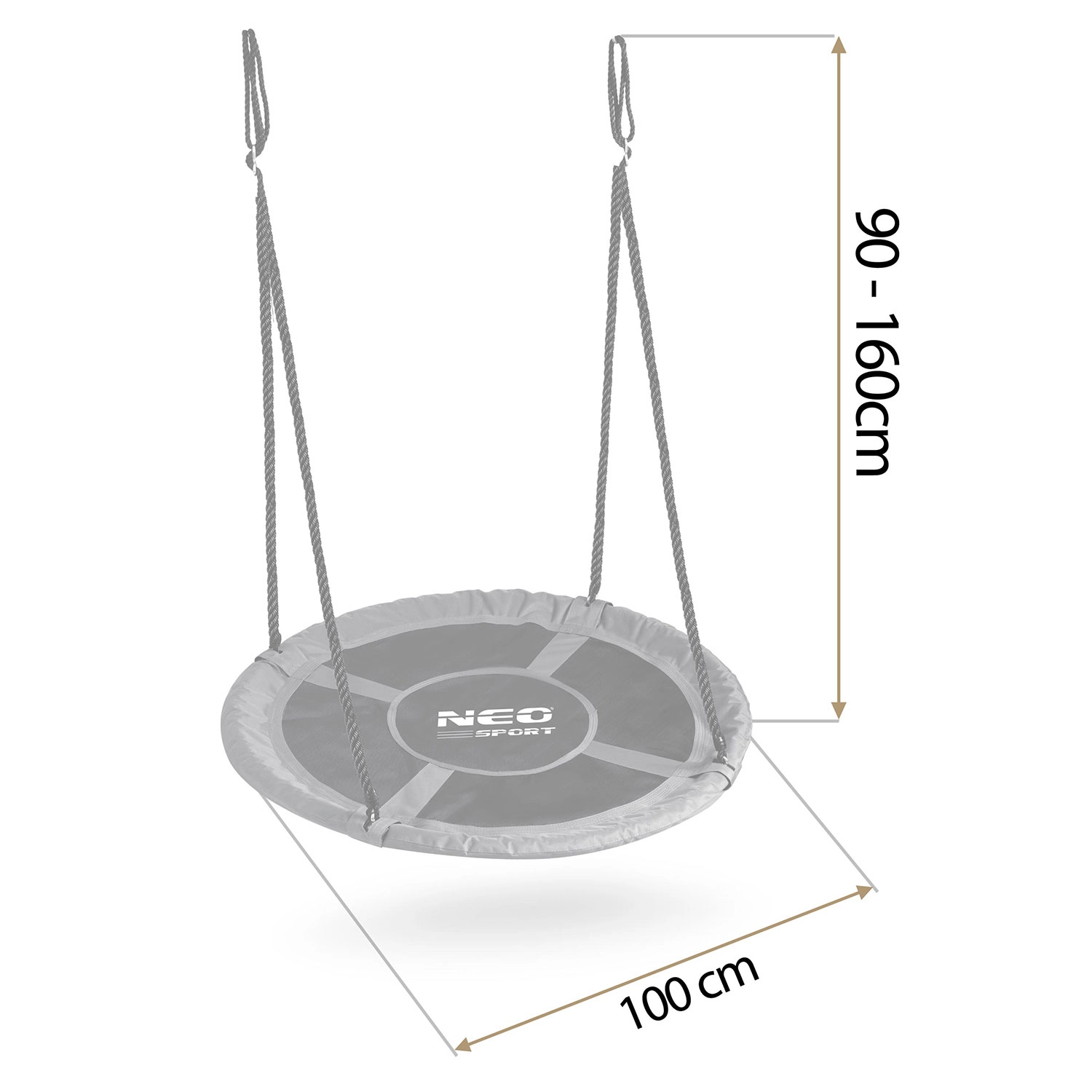 Kruhová hojdačka NEO-SPORT Swingo 100 cm je skvelou voľbou do záhrady, na terasu aj detské ihrisko. Robustný oceľový rám obalený mäkkou penou chráni pri hojdání, zatiaľ čo odolné sedadlo z materiálu Oxford 600D je vodoodolné a ľahko umývateľné. Vďaka vysokej nosnosti je vhodná pre menšie aj staršie deti – a zvládne aj spoločné hojdanie.